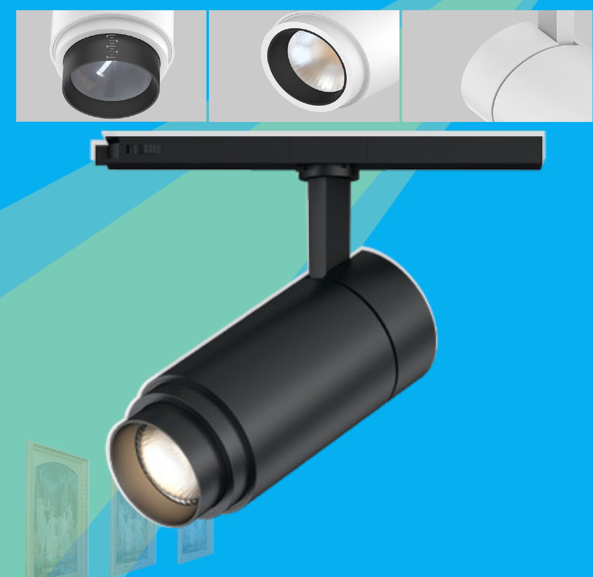 The LED track light with simple and elegant design, One track light with adjustable beam angle varies from 15°to 60°, creating a diversified and dramatic atmosphere. Lens optical design with even light output. Changeable lighting orientation with 350° in horizontal direction and90° in vertical direction. Aluminum heat sink provides excellent heat dissipation.